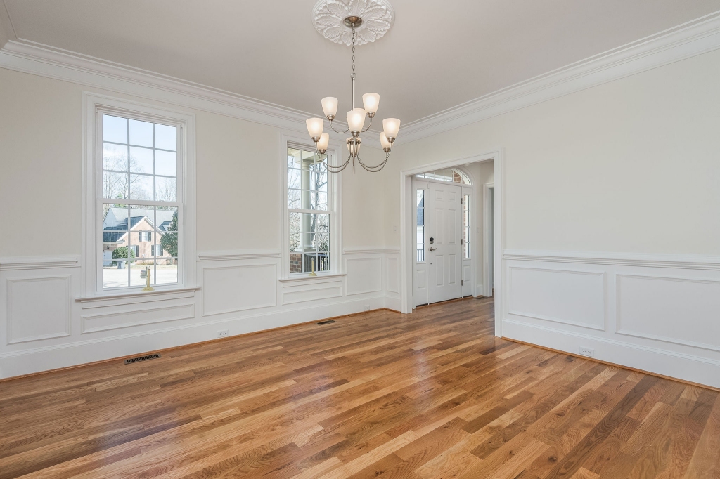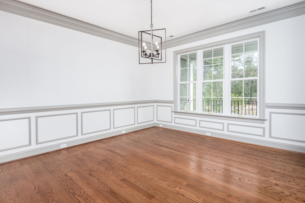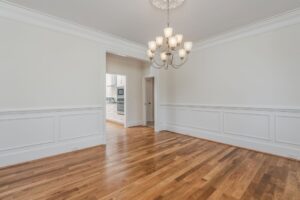 • 3 piece 4 5/8” crown moulding with 2 piece chair rail in dining room with picture moulding