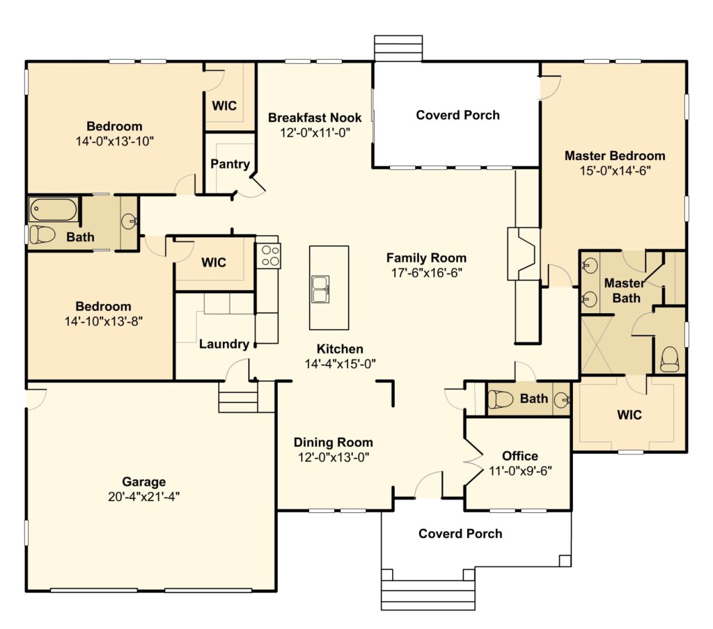 - Red or white oak flooring in foyer, living room, dining room, kitchen, breakfast area,